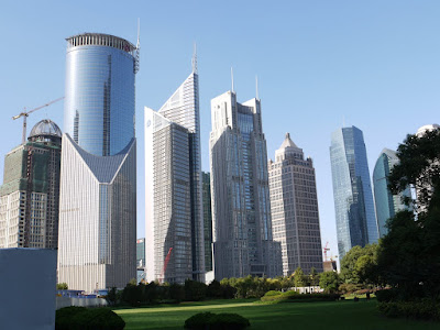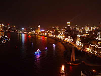 We find our burger. It is from heaven. The California-based owner Dennis and his local wife Mei, tell us he imports all the ingredients from NY. He decries the work ethic of the Chinese. Yes the plebs who are working hard to survive, work hard. All others are indifferent. For example, nobody strays from doing more than they have to or want to do. The lowest ranked, least paid bureaucrat is the one who most likely can, and will screw you. He is a wealth of hospitality and information as he steers us up to the bar in the New Hyatt Hotel. Its glass and steel lobby is the size of an aircraft hangar. The 34th floor Vue Bar overlooks the maw of the Huangpu River, with the space-age Pudong district to our left, and the Bund to our right. The bar has a small outdoor jacczzi on the rooftop and swim wear is listed on the drink menu for purchase. We’re not ones seduced by lights and glamour, and still prefer the narrow cobblestoned alleyways of old China. But this is hypnotic. There must be 20 buildings higher, much much higher than ours, many with whole sides of their buildings lit up like video screens. Our martinis cost more than our dinner, but that is the price of the view.