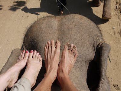 With the elephants, we sensed they weren’t especially well treated—it seemed like monotonous pony riding for them. But neither of us had done it before. We have few pictures of it because we tipped over in our kayak on the Mekong River, losing a minor fortune in clothing, stashed cash, sandals, misc. Our fault for not storing everything in the dry bag, but the river had been serene until an unforeseen series of eddys. Of course our guide was nowhere to be seen. Another kayak attempted a rescue but they too tanked. We learned that this is a common occurence among tourists. We were given no instruction, support, or heads up. The kayak would be fine if we were paddling in an oversized swimming pool.